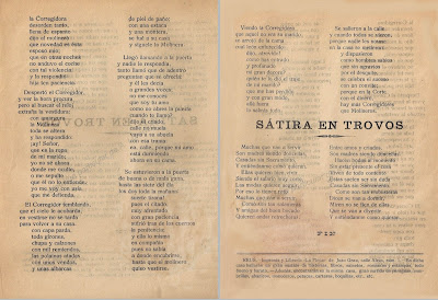 En esta nueva entrada y en las siguientes que seguirán vamos a mostrar una serie de pliegos de cordel que aluden a controversias, contiendas, disputas, desafíos o debates donde se enfrentan dos personajes. Estos interlocutores no corresponden siempre a personas, ya que pueden ser animales, plantas, estaciones del año, conceptos, figuras alegóricas, representantes de estamentos sociales, etc.