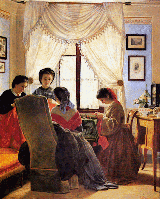 Cuadro de Odoardo Borrani (1832-1905), cosiendo camisas rojas para los voluntarios |